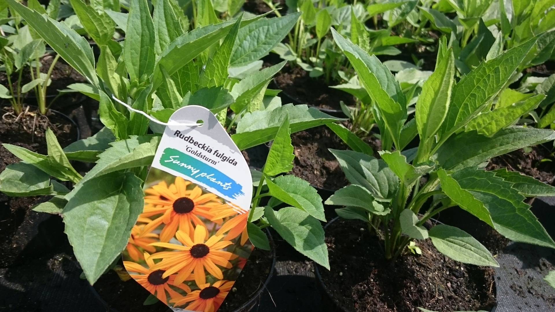 Rudbekia błyskotliwa to piękna bylina o pięknych i dużych kwiatach, ich płatki są intensywnie żółte do pomarańczowożółtych, otaczające koszyczek złożony z ciemnych kwiatów rurkowych.